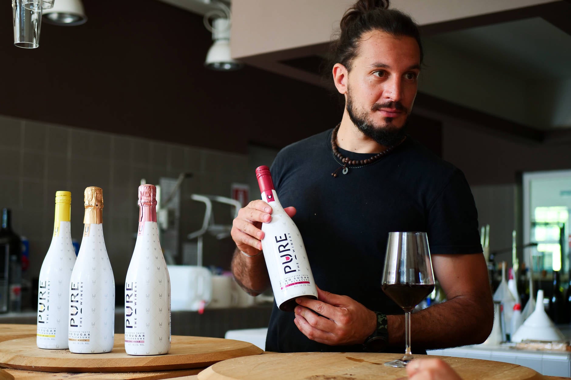 Le uve utilizzate per il Vino PURE THE WINERY sono raccolte precocemente, quindi non ci sono ancora molti zuccheri nell'uva. Poi il nostro enologo Daniele combina tecniche di fermentazione uniche e tradizionali per convertire tutti gli zuccheri in alcol in modo completamente naturale. Questa fermentazione assicura che tutti gli zuccheri presenti nell'uva siano completamente convertiti in alcol e che non rimangano zuccheri residui, come in altri vini di qualità.