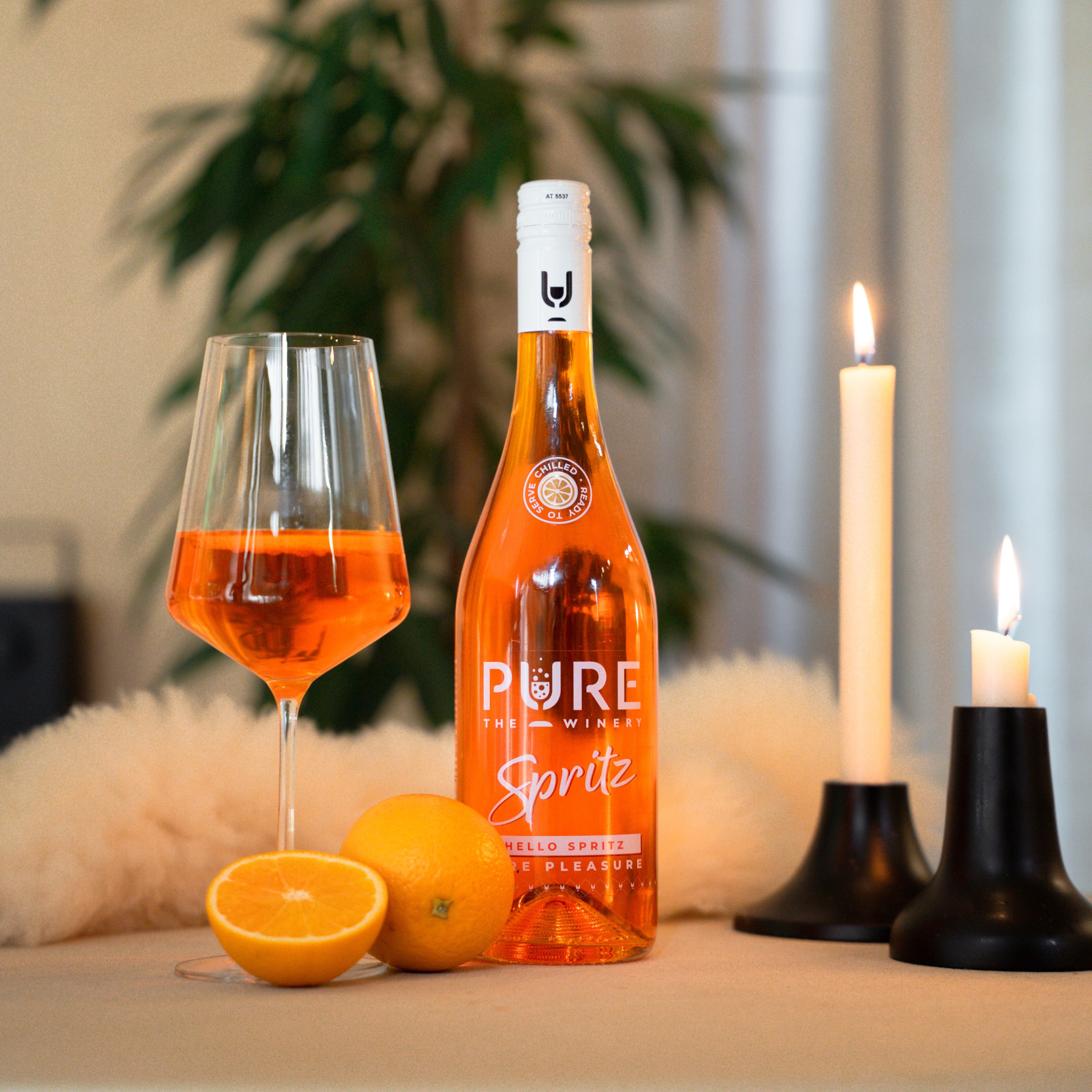 Lo Spritz di PURE è 100% senza zuccheri, contiene il 50% di calorie in meno ed è quindi perfetto se vuoi concederti un piacere il più responsabile possibile. Nessuna preoccupazione, niente zucchero, solo l'amato gusto spritz e pura qualità.